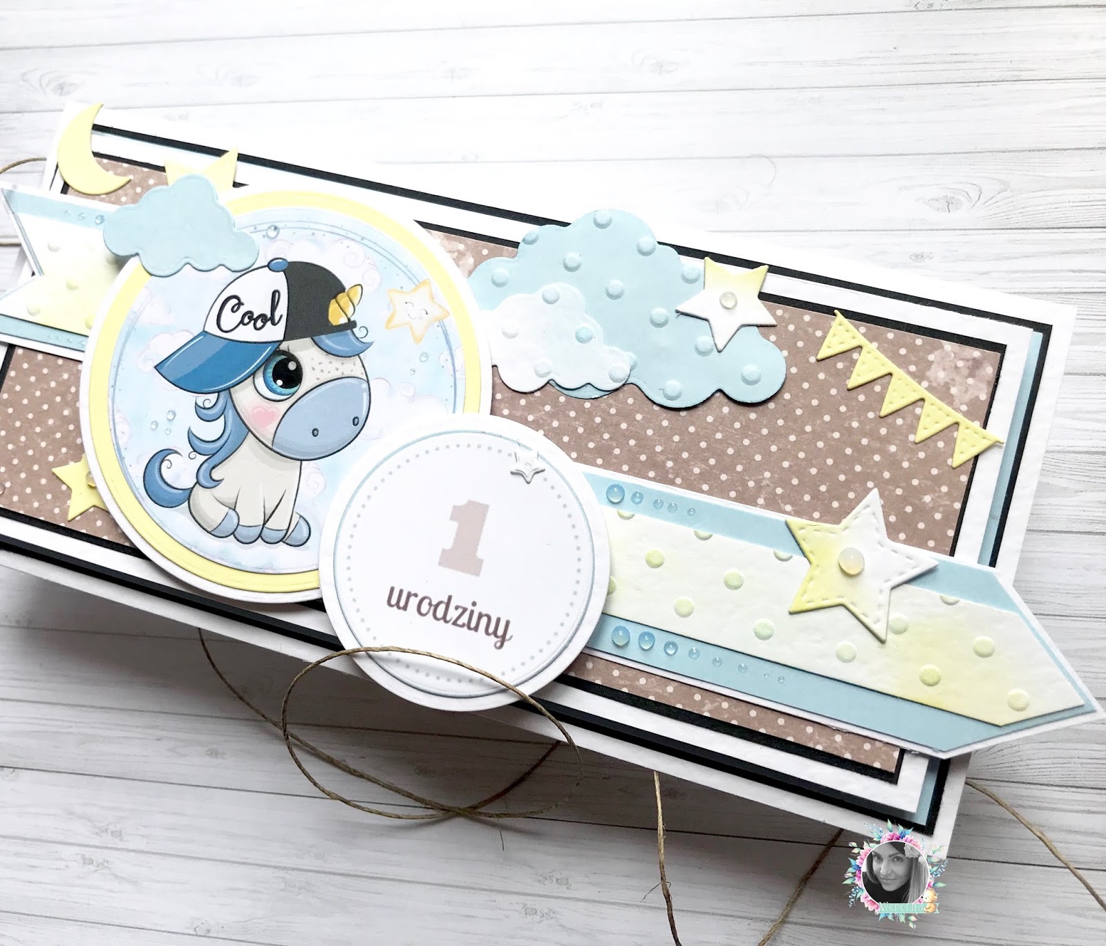 Piękny miesiąc zaczynam radośnie karteczką z okazji pierwszych urodzin.