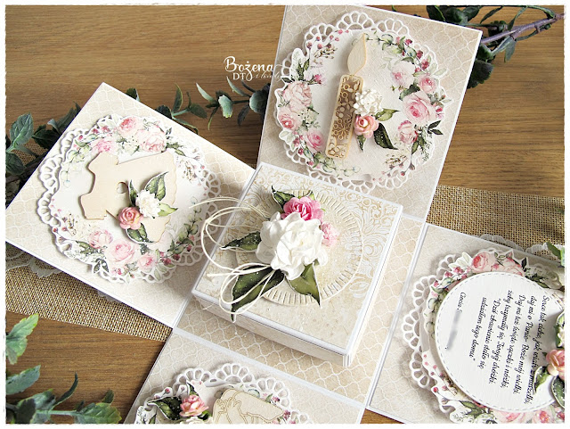 Maj i czerwiec to czas komunii ale nie tylko. Odbywają się różne uroczystości np. chrzty. I dzisiaj właśnie chciałabym przedstawić Wam box, który przygotowałam z tej okazji dla małej Natalki. Wykorzystałam znane Wam i lubiane wianki z różyczkami.